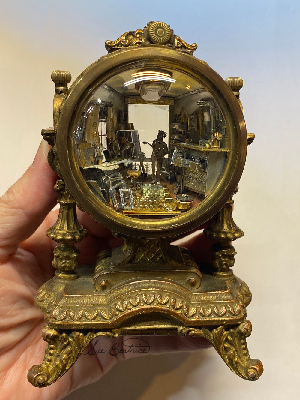This sculpture isn’t just an art piece—it’s a portal to a world of tiny, awe-inspiring beauty. "The Art Studio" is a singular creation, capturing an entire world of artistic expression in miniature form. It stands as a testament to Sue Beatrice's unparalleled ability to capture life's intricacies in watch parts, making it a must-have for collectors and art lovers seeking a truly unique treasure.