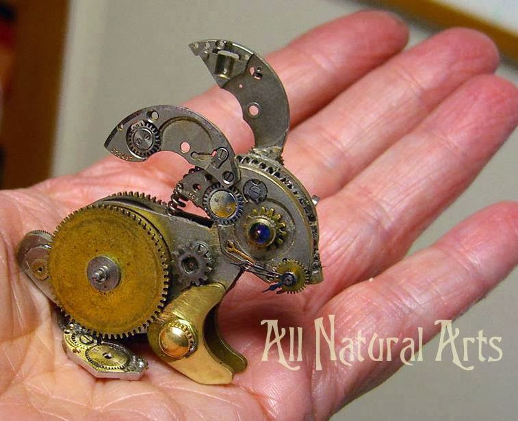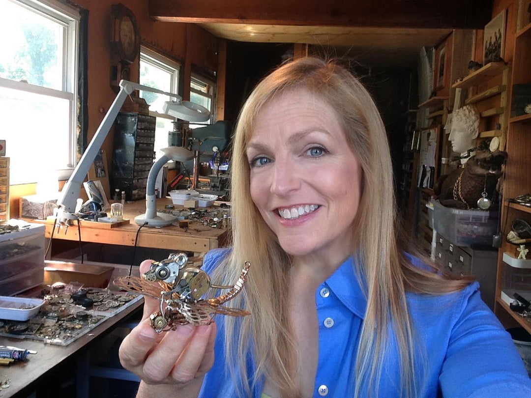 Sue has the astounding ability to breathe life into her freestanding animal sculptures, created only from antique pocket watch parts. Whether it's bunnies, dogs, or sea creatures, each piece captures lifelike nuance. Commission Sue for your unique keepsake today.