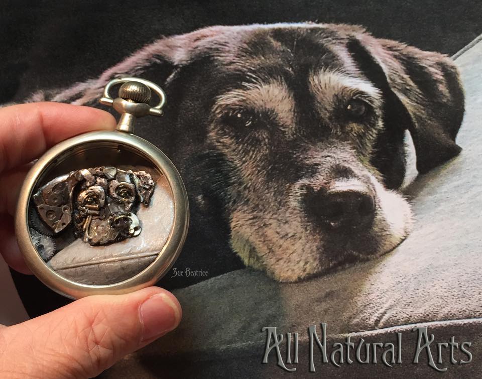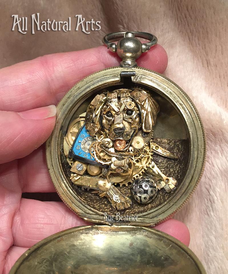 Sue can capture any special person in your life within her exquisite watch parts creations.