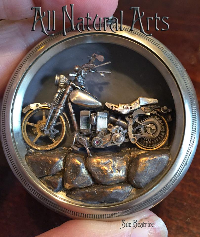 Their cherished bike, car, or truck isn't just a vehicle, it's a passion. Let Sue create it in antique watch parts for them to relive those open road adventures, even whilst sitting in the office.