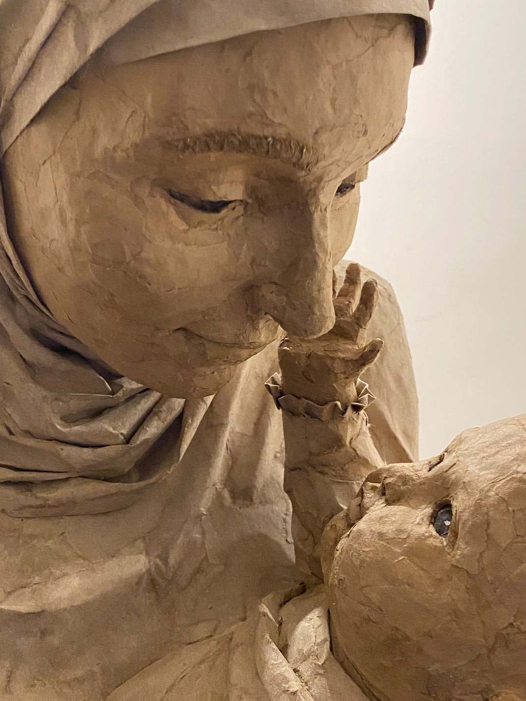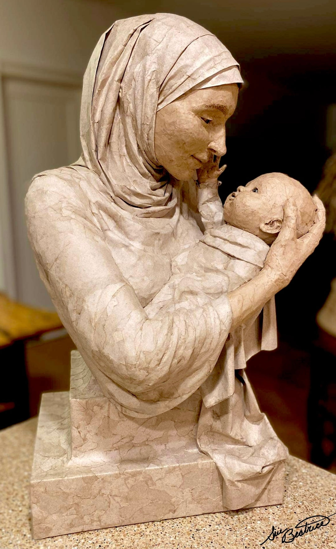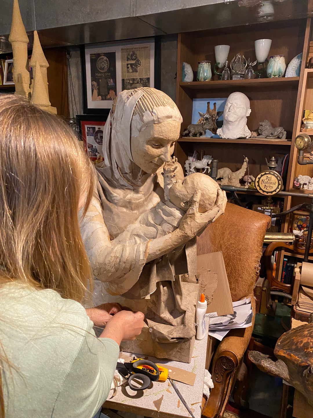 Sue creating "The Bond", her Mother and Child cardboard sculpture.